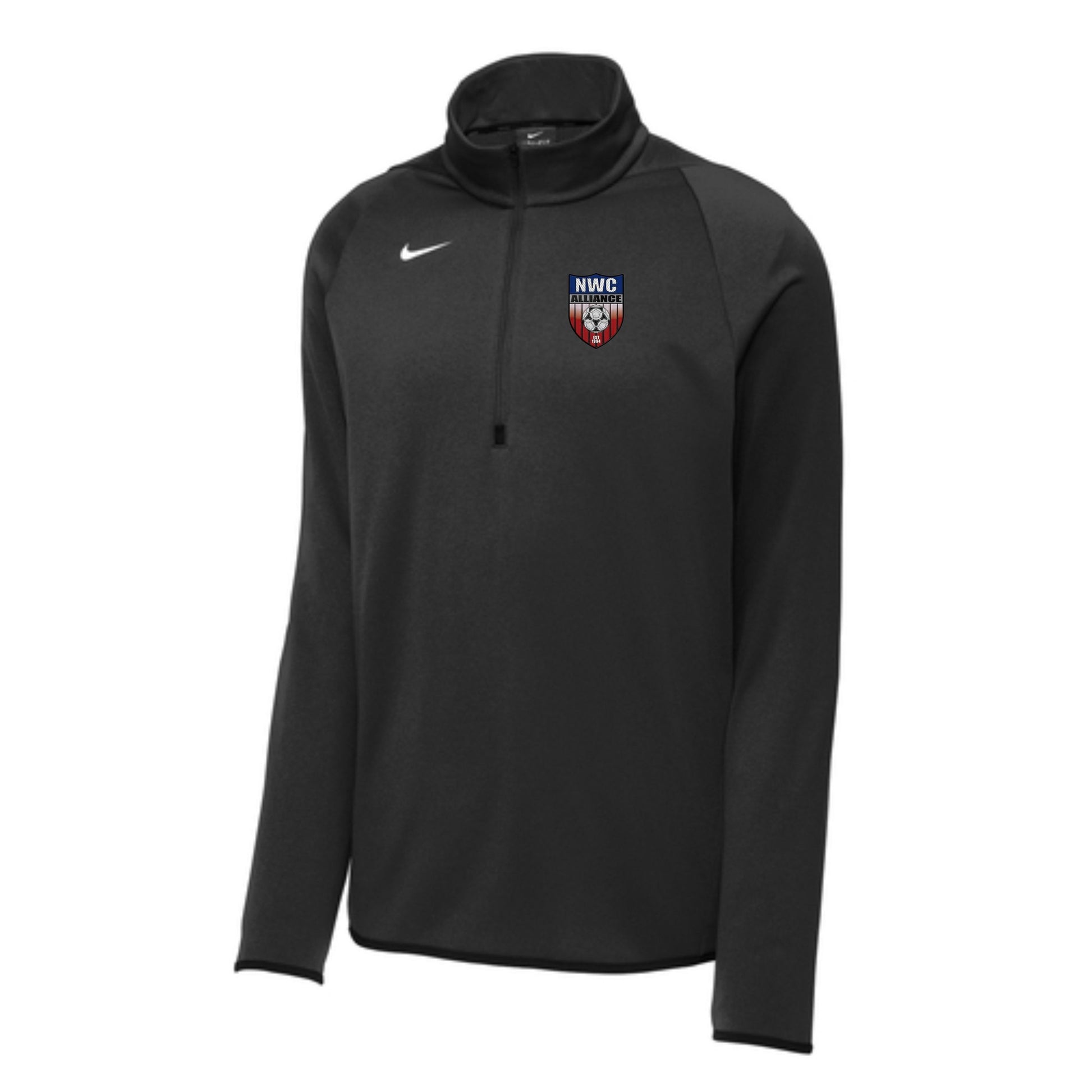 Nike has elevated this style as a year-round workout essential with incredibly warm, insulating Therma-FIT fabric which breathes and manages moisture. The design includes a zip-through collar, elastic binding at the open cuffs and the open drop tail hem. The contrast heat transfer Swoosh design trademark is on the right chest. Made of 7.4-ounce, 60/40 recycled polyester/polyester Therma-FIT fabric.